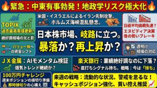 投資日記 【中東有事勃発】TOPIXは最高値で好調!来週の投資戦略と注目銘柄【株日記】 米国・イスラエルによるイラン先制攻撃で地政学リスクが極限まで高まっています。エヌビディア決算後の半導体株の動向、TOPIX最高値更新の背景、そして大注目のJX金属・楽天銀行のチャート分析を徹底解説。100万円チャレンジの最新売買記録と、暴落に備えるスイングトレードの戦略も公開! 2026.03.01 投資日記