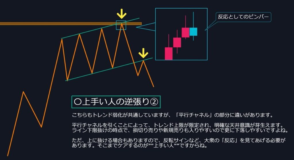 極意②:「平行チャネル」で大衆の損切りを狙う