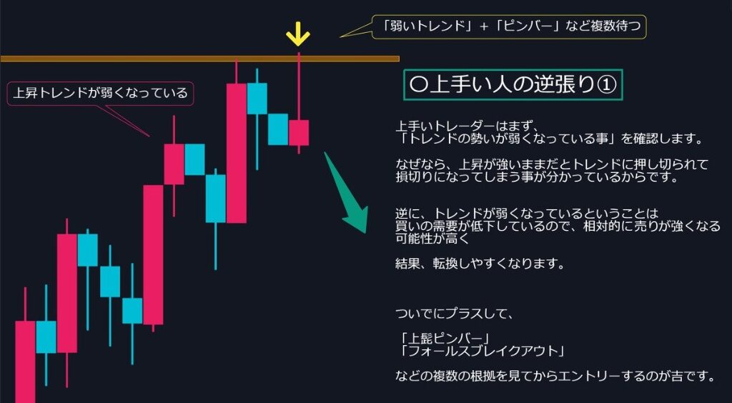 では、勝っているトレーダー(上手い人)はどのように逆張りを狙うのでしょうか?
