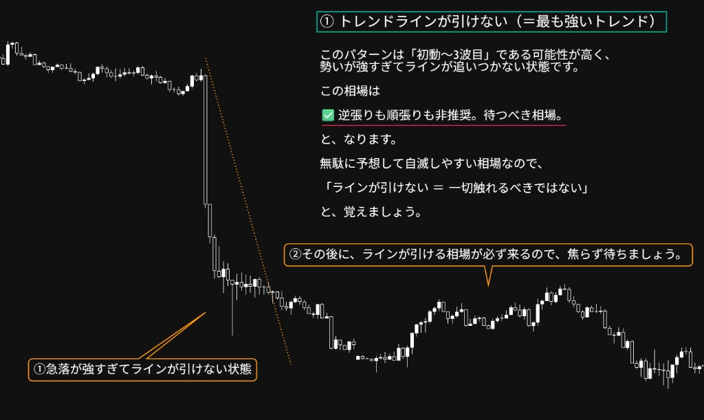 フェーズ①:ラインが引けない(最も強いトレンド)