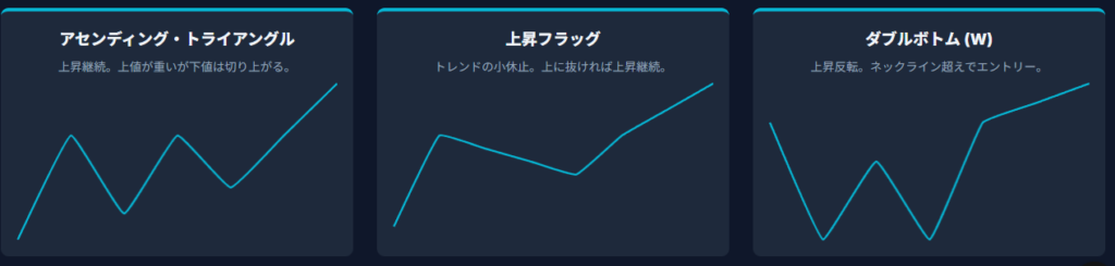 これらは世界中のトレーダーが意識している形なので、暗記必須です。