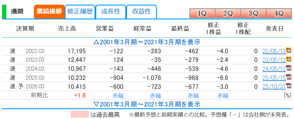 - 2026年3月期(予想):-6.00億円(赤字継続)