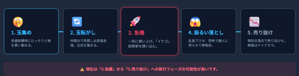 彼らは、市場参加者の注目を集め、「まだまだ上がるぞ」と思わせることで一般投資家(イナゴ)を誘い込みます。そして、十分に株価が上がったところで売り抜け、利益を得るのです。