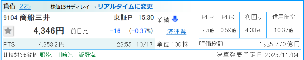 - 海運市況という大きな変動要因があるため、株価のボラティリティ(変動幅)は大きめです。