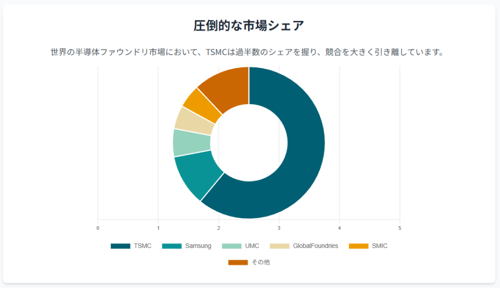 TSMCの市場における支配力は、そのシェアを見れば一目瞭然です。
