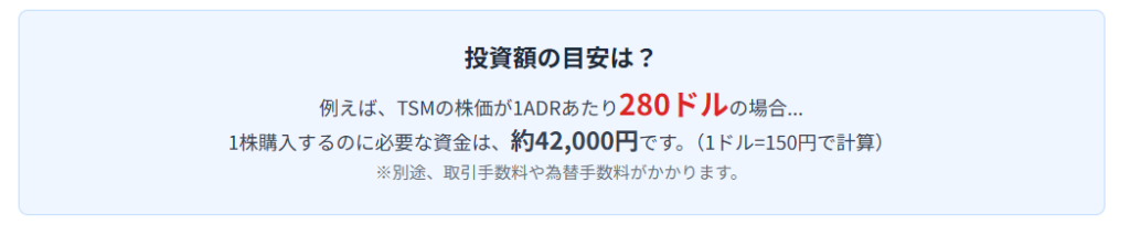 つまり、約4万5000円からTSMCへの投資を始めることが可能です。