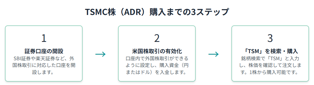 世界最高の半導体企業であるTSMCですが、日本の個人投資家はどのようにしてその株式を購入できるのでしょうか。