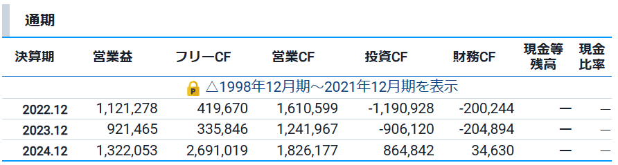 - 特に注目すべきは、2024年予想のフリーキャッシュフロー(フリーCF)です。