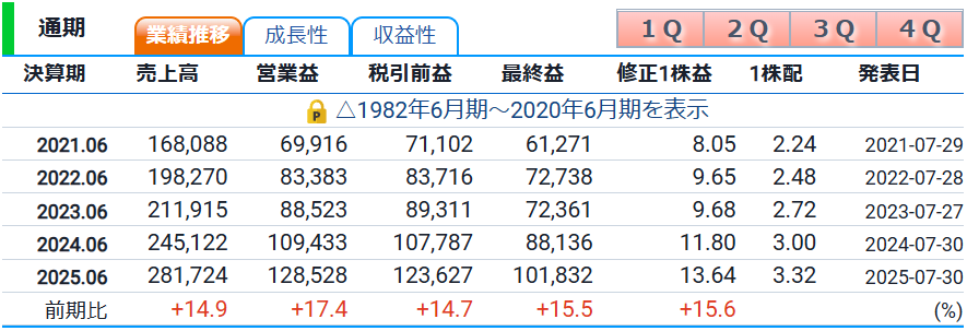 純利益が+81%伸びた一方でPERは28倍台に収まっており、成長率と比較すると決して割高ではありません。