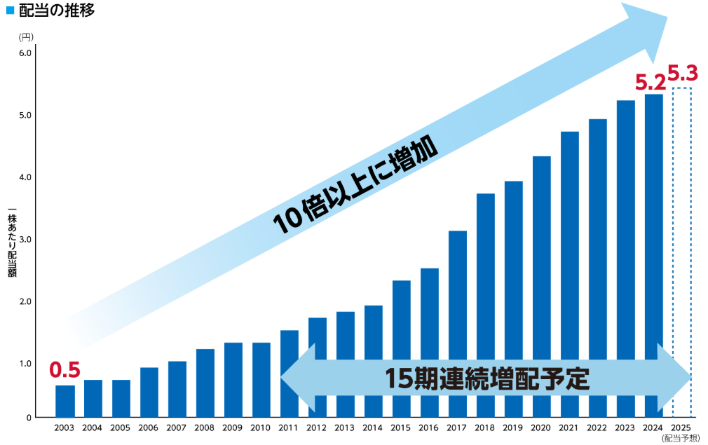 15年連続の増配を予定しており、株主還元の実績は申し分ありません。