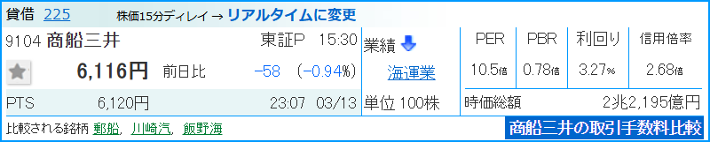 - 高い利回りと値動きを狙うなら: 商船三井(9104)