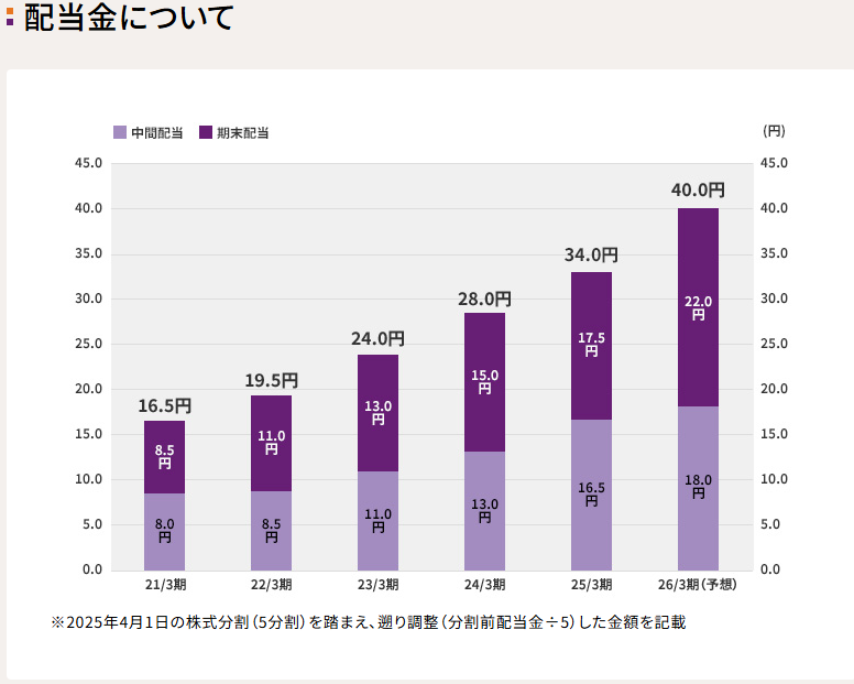 - 年間配当金:40円(3月:22円)