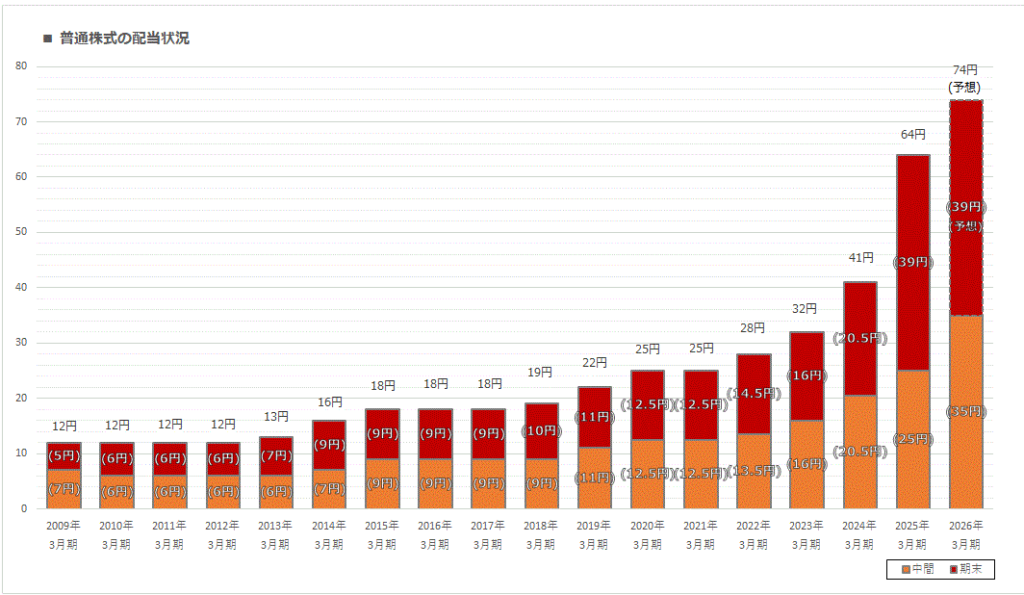 - 年間配当金: 74.00円(中間35円+期末予想39円)