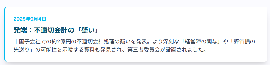①2025年9月4日:中国子会社での不適切会計の「疑い」
