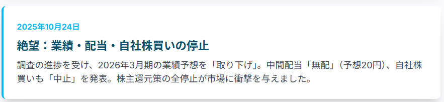 ②2025年10月24日:業績予想取り下げと「無配」転落
