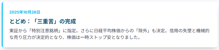 ③2025年10月28日:「特別注意銘柄」指定と「日経平均」除外