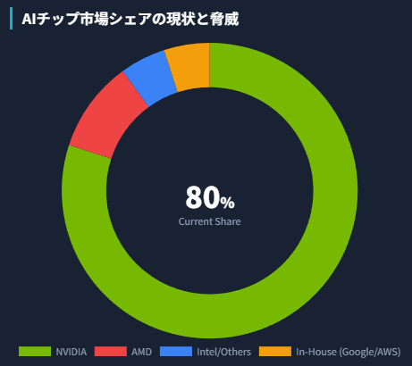 - GoogleのTPU、AMDのAIチップ、Huaweiの躍進が脅威となっています。