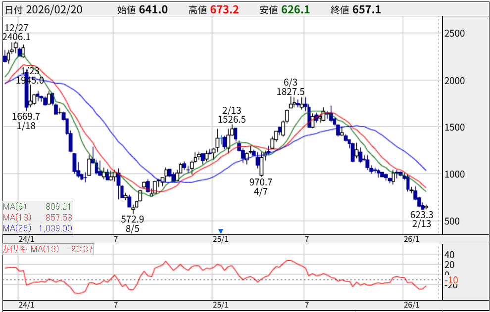 • 市場の誤解による暴落で株価は600円台後半まで落ち込み、テクニカル指標の多くが「強い売り(売られすぎ)」を示しています。