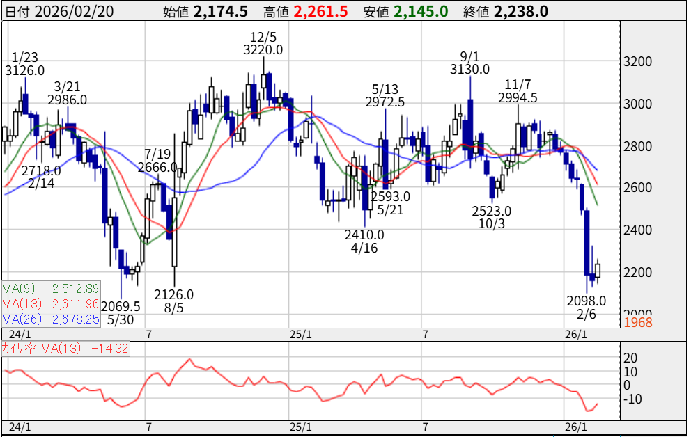 • 今回の相場下落でも下値抵抗線である2200円で反発し、下値の堅さを証明しました。