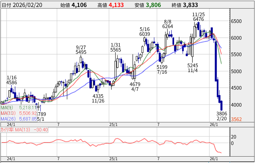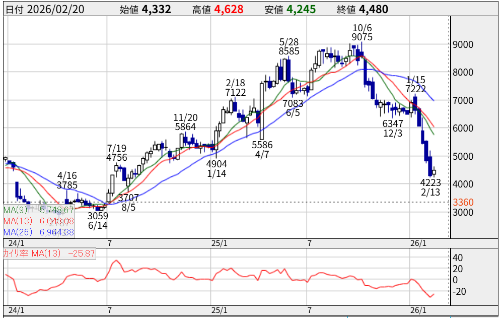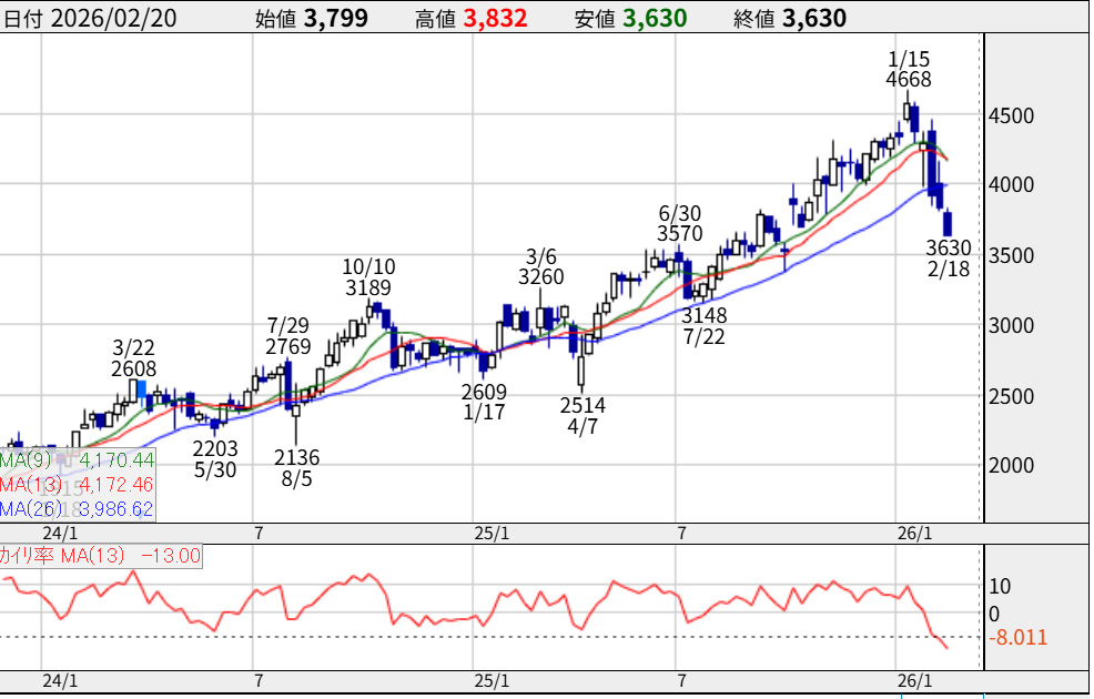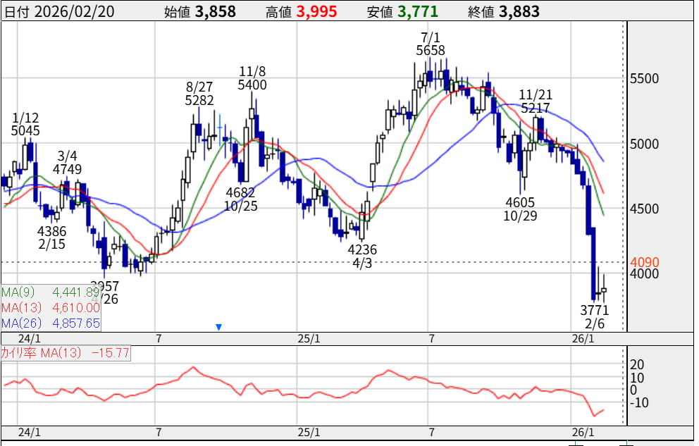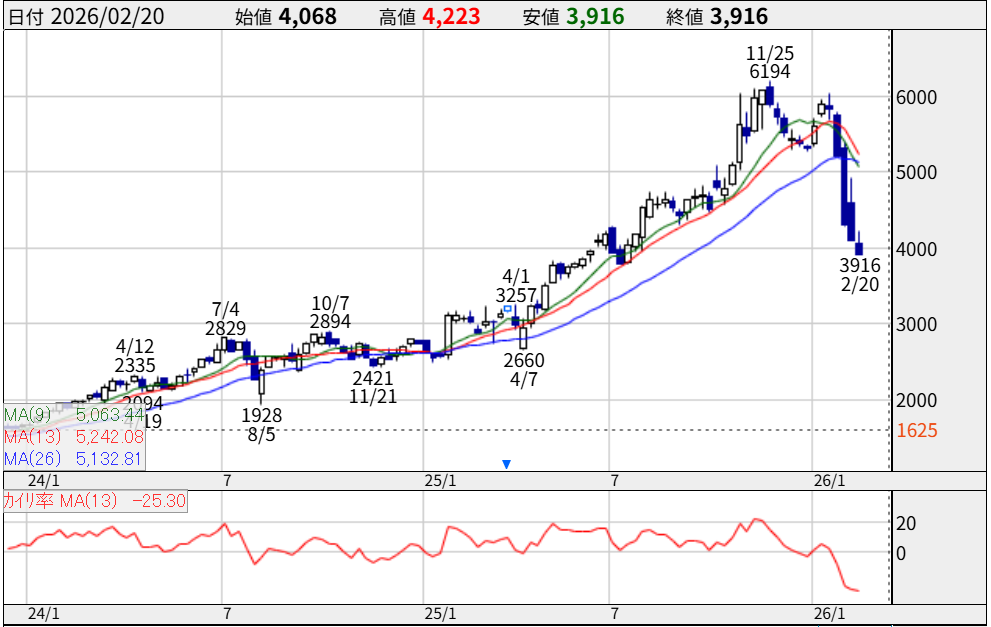 • 理論株価(PER基準)の5,815円に対しても現在は非常に割安な水準に放置されており、長期間もみ合った後のエネルギー蓄積が完了しつつあるため、上放れ(急上昇)が期待できる絶好の仕込み時です。