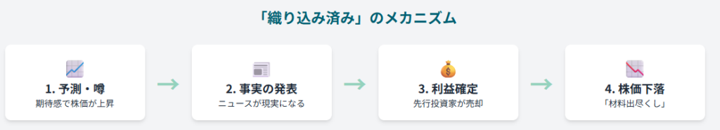 これが、好材料の発表後に株価が下落する大きなメカニズムです。