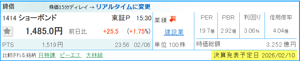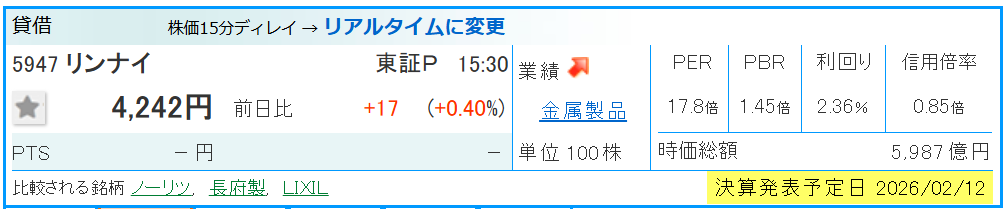 - ただ2/12が決算のため注意も必要です。