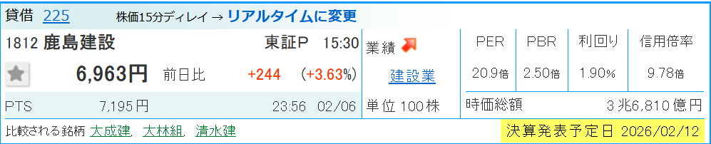 参照:https://kabutan.jp/stock/chart?code=1812