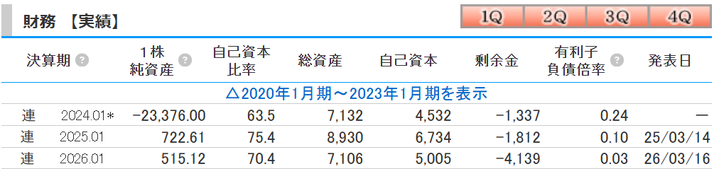 • 自己資本比率(2026.01期):70.4%