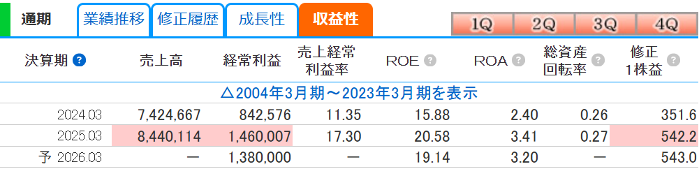 2026年3月期予想では少し減益予想をしていますが、前期からしっかりと利益をキープしており、今回の業務提携で期待できます。
